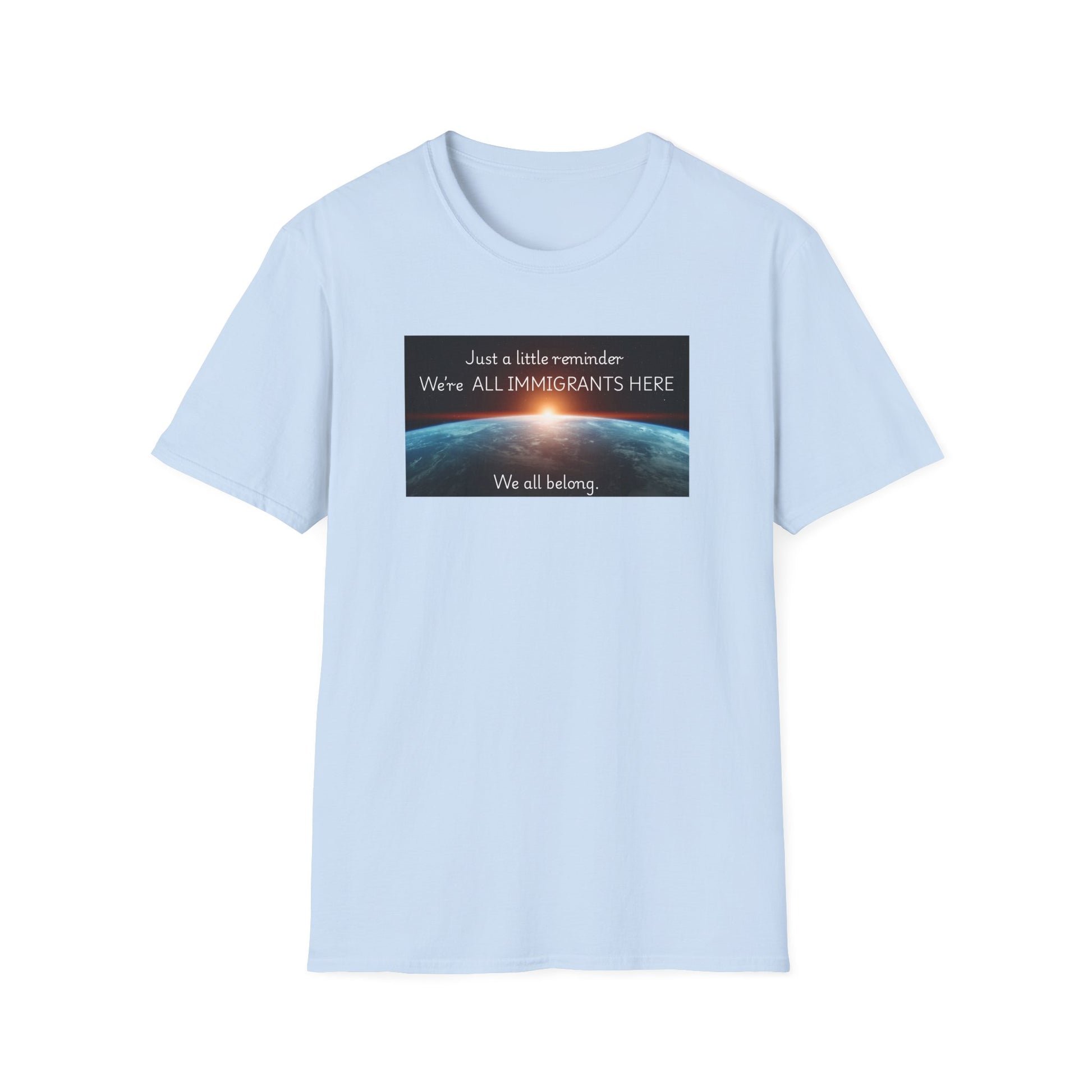 Embrace a powerful message of unity and belonging with this stylish Unisex Softstyle T-Shirt. Crafted from high-quality, lightweight fabric, it feels blissful against the skin while providing a classic fit that suits any occasion, whether casual or semi-formal. The shirt’s bold design makes it a perfect statement piece for gatherings, rallies, and everyday wear. Ideal for individuals seeking to express their values, this t-shirt resonates with those passionate about inclusivity and diversity. Perfect for holidays and observances like World Refugee Day, Human Rights Day, or any celebration of community and togetherness, it makes a thoughtful gift for friends and loved ones. Wear it proudly, and inspire conversations around a shared, global identity!